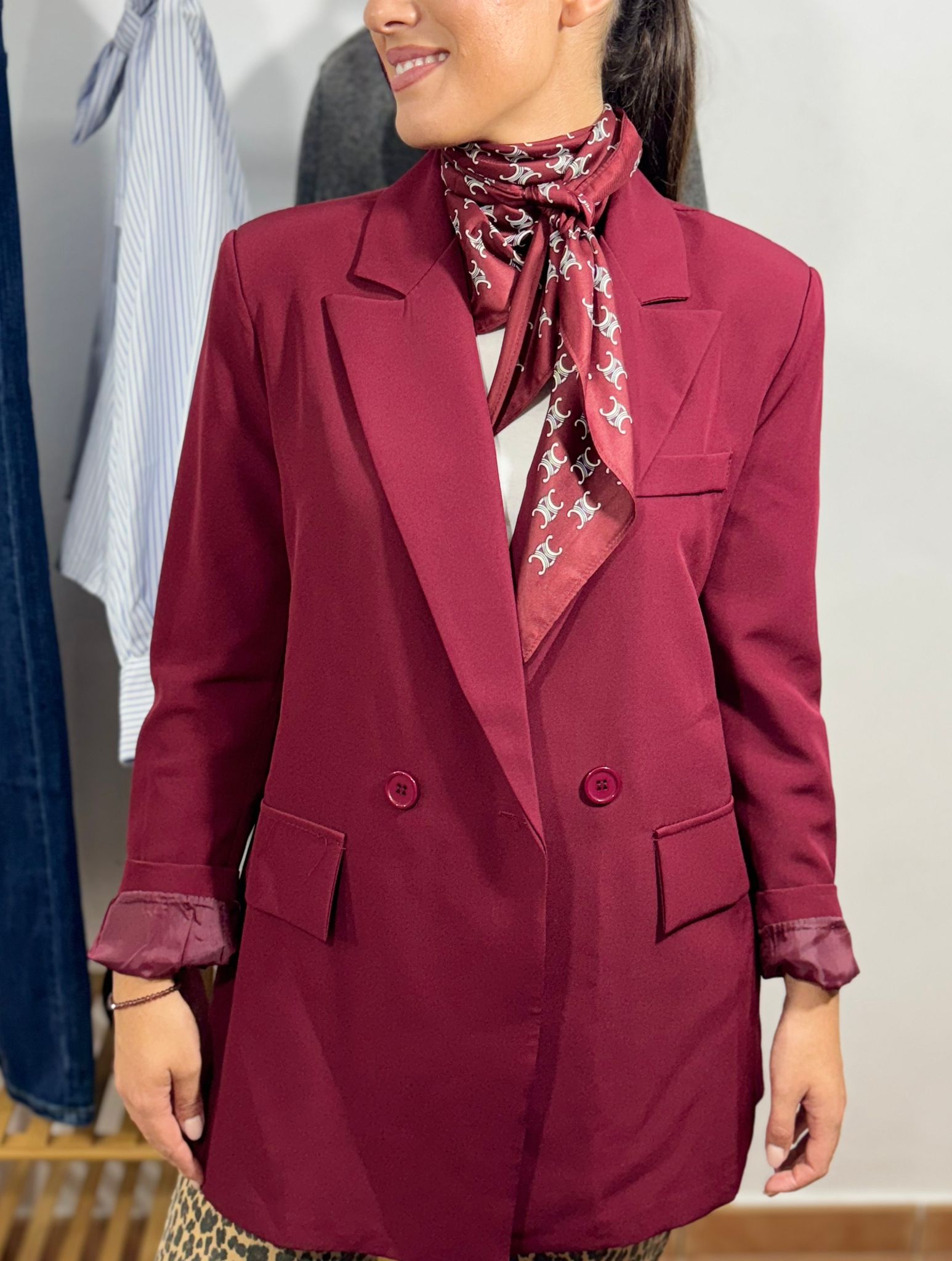 Blazer en color vino tinto de corte cuadrado, no es ajustada. Con este corte , tus looks son desenfadados y estilosos.