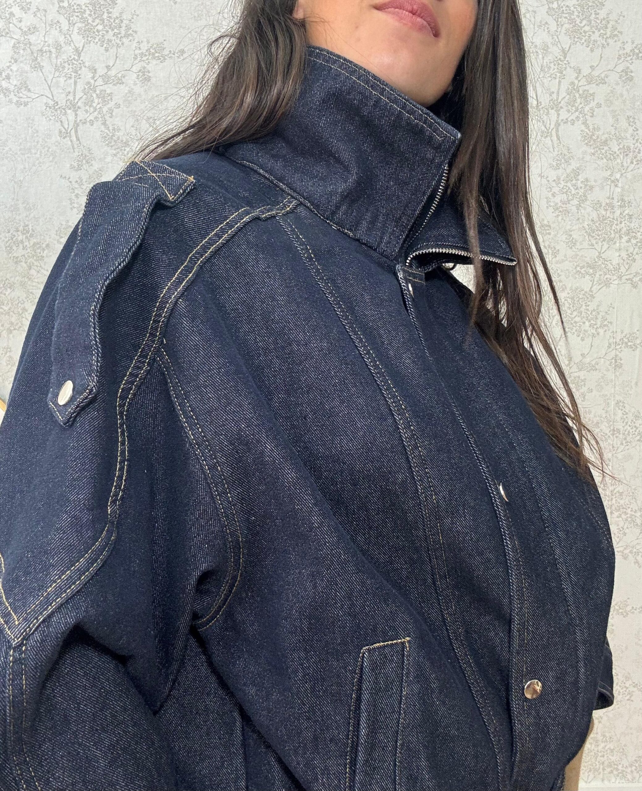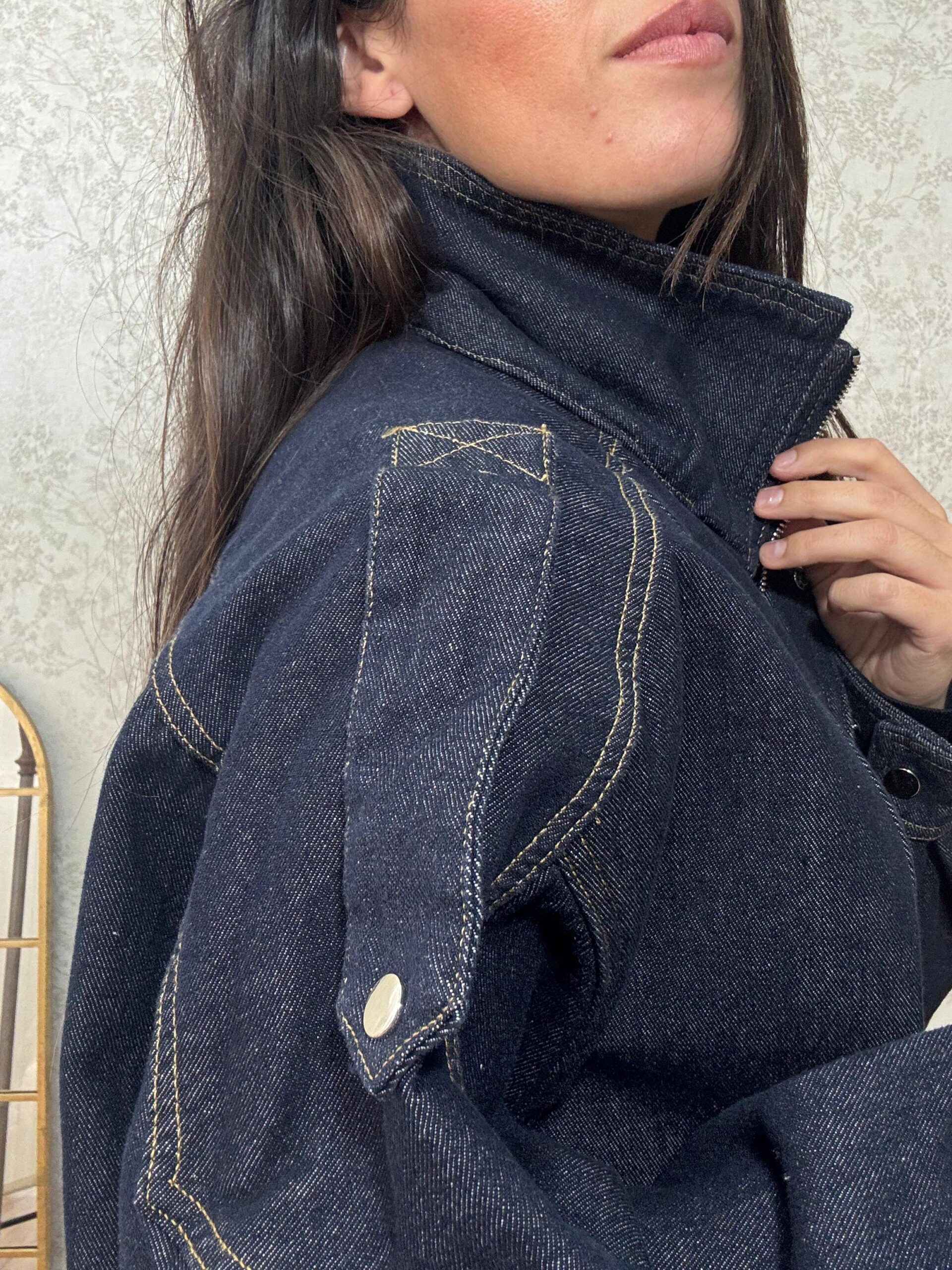 Chaqueta vaquera tipo bomber abrigada por dentro.