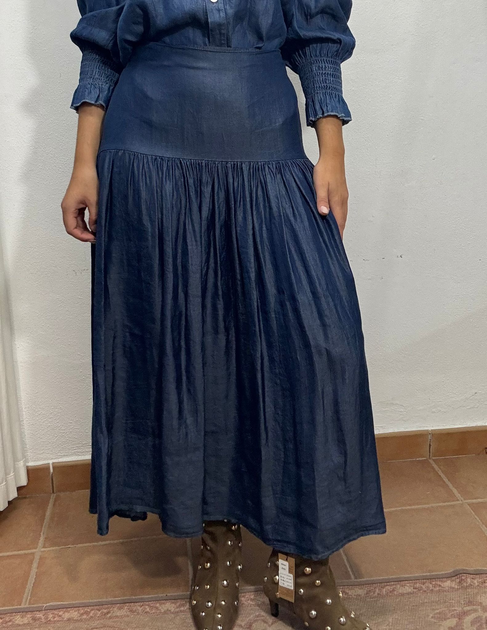 Corte imperio bajo y fruncido. La parte superior se ajusta al cuerpo y los frunces le aportan movimiento y un estilo femenino y relajado.